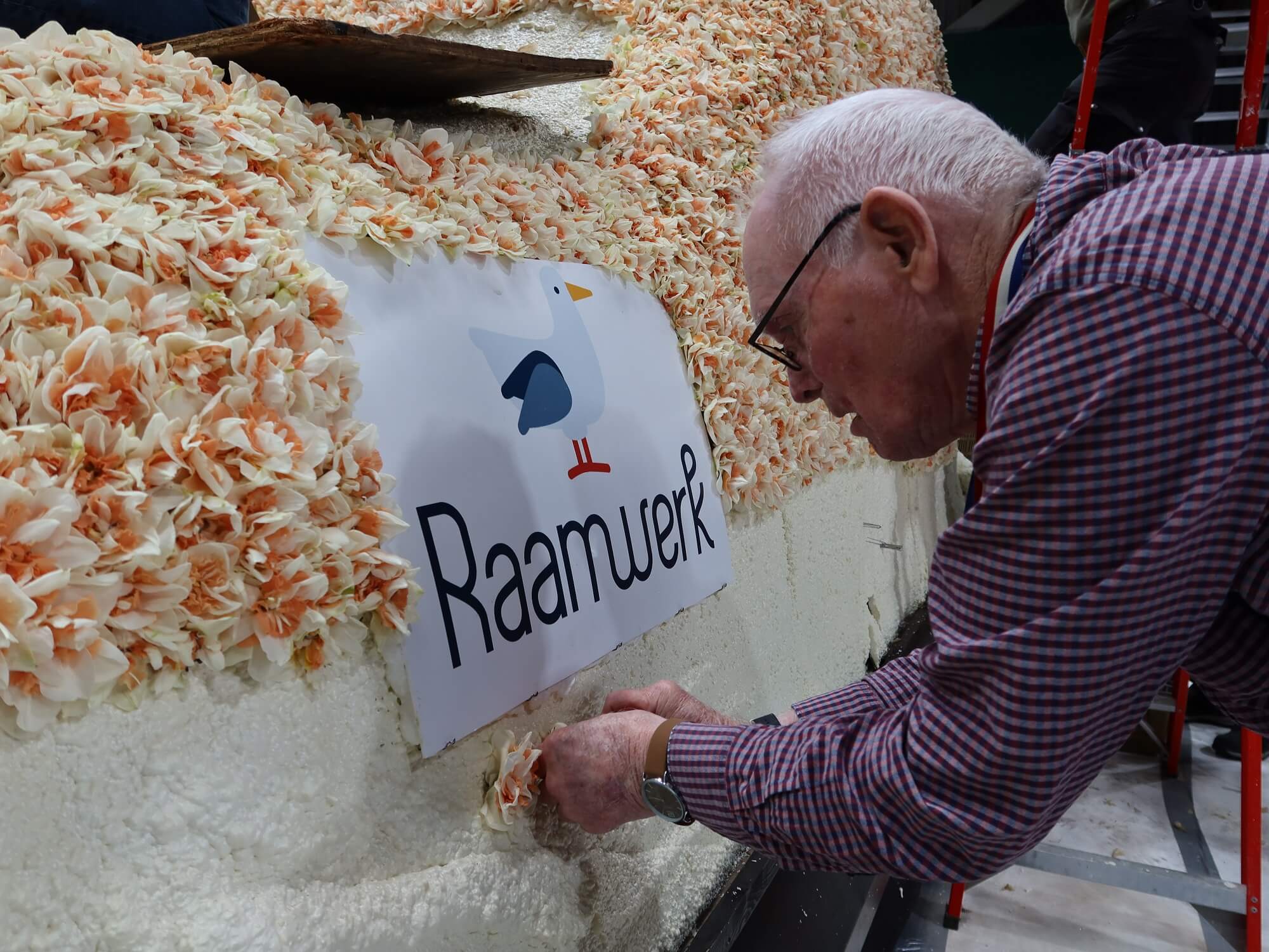 Raamwerk doet dit jaar met een eigen praalwagen mee aan het Bloemencorso van de Bollenstreek. Op woensdag 20 april hielpen cliënten van Raamwerk de Lissesche IJsclub vol trots mee met het steken van de bloemen.