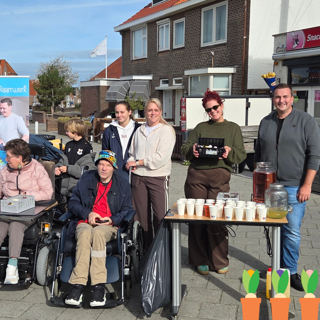 De routes liepen alle dagen langs verschillende locaties van Raamwerk waardoor deze initiatieven snel te regelen waren. Zo greep Strandschelp 19 (Zeehos) deze kans aan om hun wervingsactie voort te zetten met zelfgemaakte flyers; een prachtig voorbeeld van eigen initiatief en betrokkenheid! Ook vierden meerdere cliënten het grote feest mee bij de finishlijn.